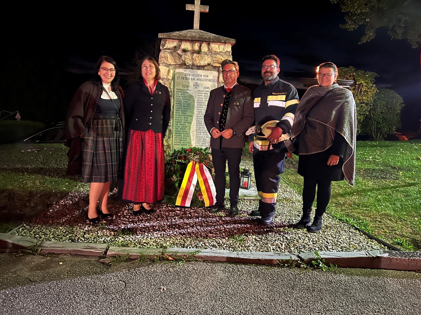 Den stimmungsvollen Auftakt bildete ein Fackelzug durch den Ort, an dem zahlreiche Vereine sowie viele Bürgerinnen und Bürger teilnahmen. Die anschließende Gedenkveranstaltung, gestaltet vom Musikverein Haimburg, dem Chor Klangkariert, der Volksschule St. Peter, der Freiwilligen Feuerwehr und der Brauchtums- und Dorfgemeinschaft St. Peter, stand ganz im Zeichen von Heimat, Zusammenhalt und Dankbarkeit.
