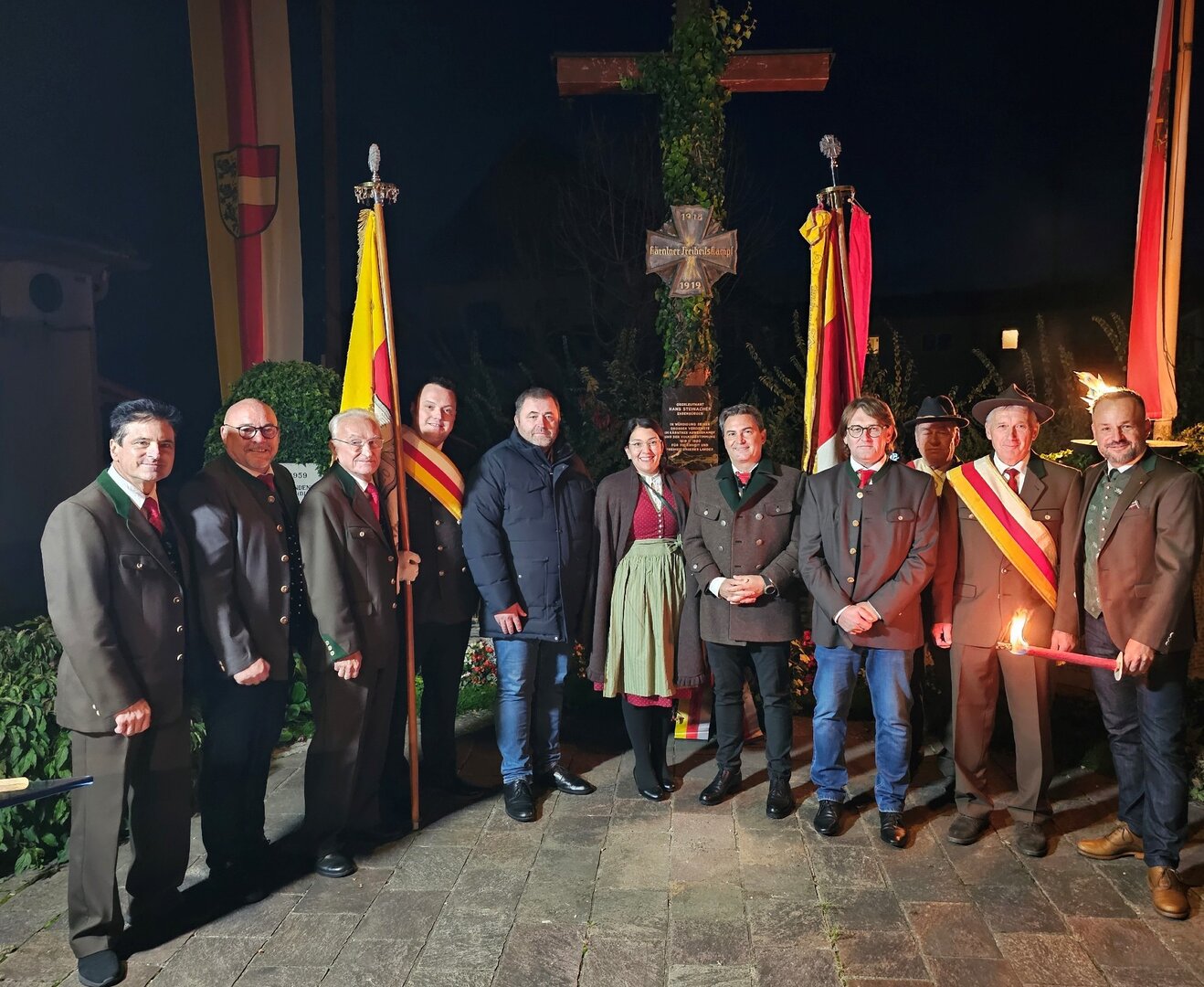 Nach dem Festakt und der Festrede von Bgm Markus Lakounigg führte ein Fackelzug zum Friedhof, wo im Gedenken an die Opfer des Abwehrkampfes ein Feuer entzündet wurde. Der Organisator vom Kärntner Abwehrkämpferbund, Alfred KUSS, konnte neben den zahlreichen Bewohnern von Tainach und Umgebung auch eine Fahnengruppe des Kärntner Abwehrkämpferbundes, eine große Abordnung der örtlichen Feuerwehr, Bürgermeister Markus Lakounigg, die StR Gerald Grebenjak, Elisabeth Kollitsch und Stefan Riepl, sowie die GR Thomas Koberer, Andreas Motschnig und Wolfgang Miglar, begrüßen.