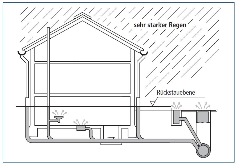 Aus wirtschaftlichen Gründen ist es nicht möglich, öffentliche Kanalisationen so groß zu dimensionieren, dass auch außergewöhnliche Regenereignisse zur Gänze abgeleitet werden können. Daher kann es bei starken Regenfällen vorübergehend zur Überlastung der Entwässerungsleitungen kommen. Dabei steigt der Wasserstand in den Entwässerungsleitungen bis auf jene Höhe, wo Wasser wieder ins Freie gelangen kann (Rückstauebene). Im Regelfall ist das der nächste Kanalschacht oder das nächstgelegene Kanaleinlaufgitter beim Straßenkanal.