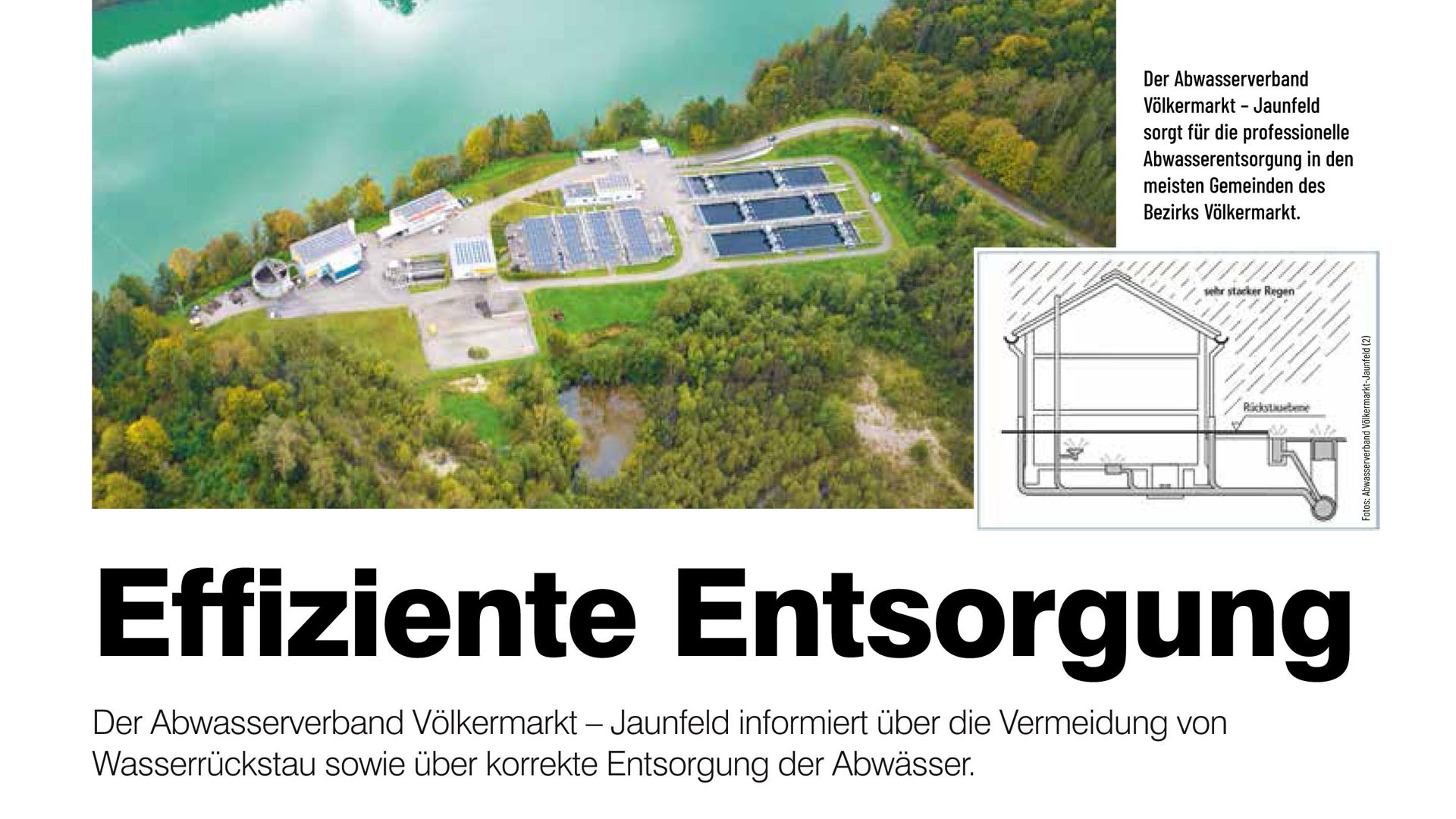 Eine funktionierende Infrastruktur ist ein wesentlicher Faktor, um die wirtschaftliche Entwicklung einer Region und die daraus resultierende Bautätigkeit sicherzustellen. Dabei ist auch die professionelle Abwicklung der Abwasserentsorgung ein wesentlicher Erfolgsfaktor. Im Bezirk Völkermarkt ist dafür in den meisten Gemeinden der Abwasserverband Völkermarkt – Jaunfeld zuständig. Das Team unter der Führung von Obmann Bürgermeister Markus Lakounigg ist für den Betrieb von fünf Kläranlagen, über 400 Abwasserpumpwerken und nahezu 1.000 Kilometer Kanalleitungen verantwortlich. Dies geschieht vom Firmenstandort bei der Kläranlage in Kohldorf aus, wo das Abwasser aus einem Einzugsbereich mit ca. 30.000 Einwohnern gesammelt und gereinigt wird. Ein 24-Stunden-Notdienst garantiert einen reibungslosen Betrieb rund um die Uhr.