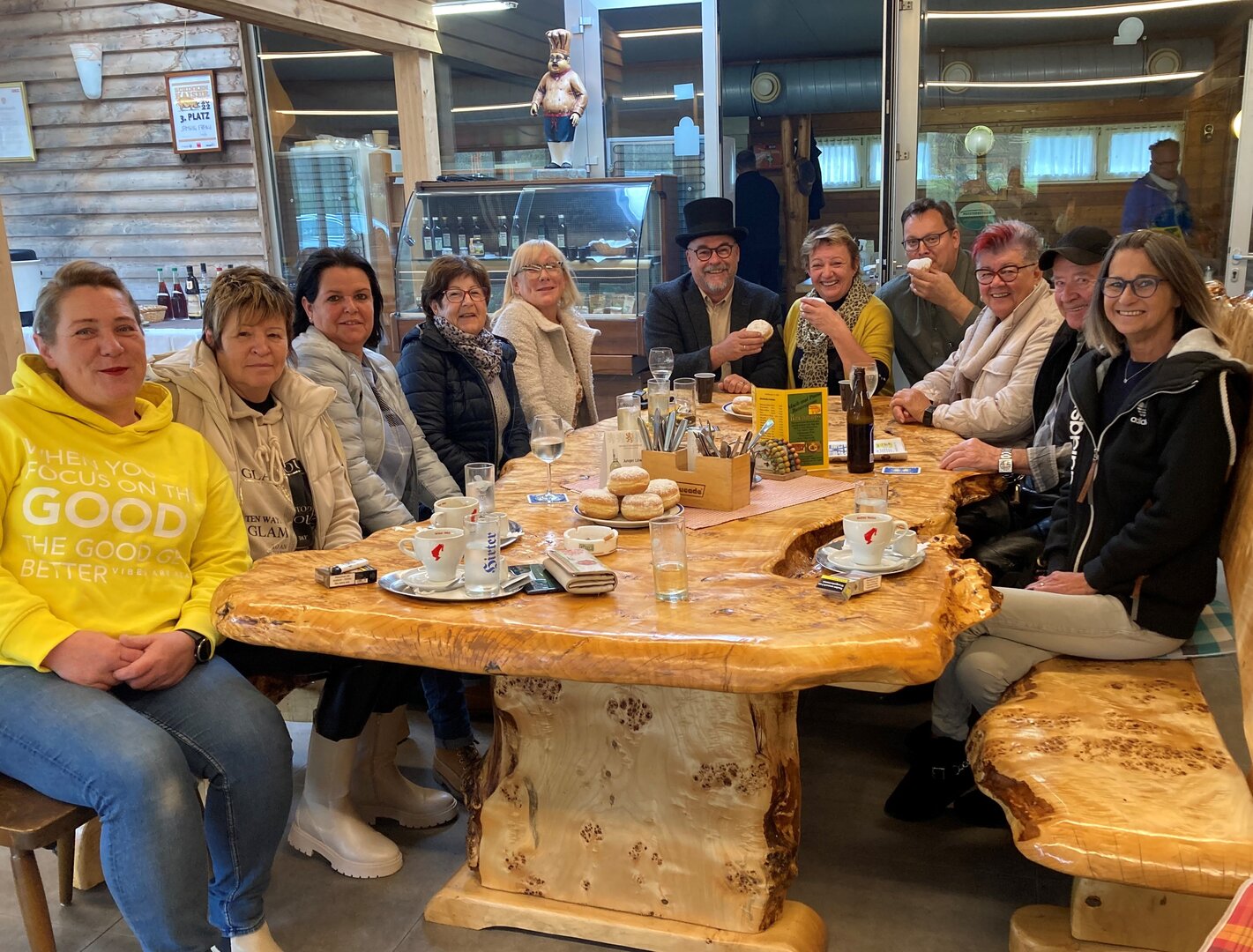 Gleichzeitig feierte Poldi Steindorfer ihren Geburtstag, wozu ihr alle „Faschingswecker“, darunter auch StR Gerald Grebenjak, recht herzlich gratulierten. Faschingsgemäß wurden auch die ersten Krapfen verteilt, die gerne angenommen wurden.