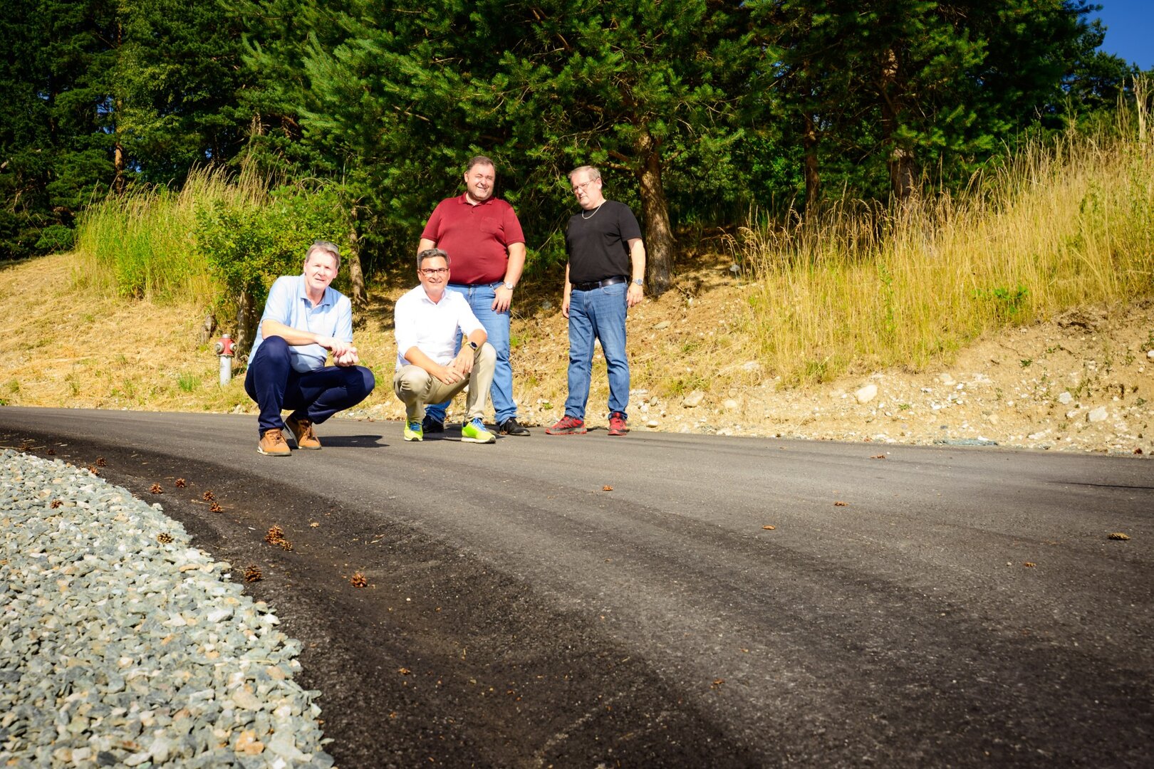 Kürzlich wurde der Fichtenweg in St. Peter am Wallersberg für den Verkehr freigegeben, berichtet Bürgermeister Markus Lakounigg. Durch die Asphaltierung des etwa 150 Meter langen Abschnitts kann die Siedlung nun auch auf diesem Teil des Weges staubfrei erreicht werden. Außerdem wurde während der Arbeiten die steile Auffahrt begradigt, was vor allem im Winter für mehr Sicherheit sorgt, erklärt Baustadtrat Stefan Riepl.