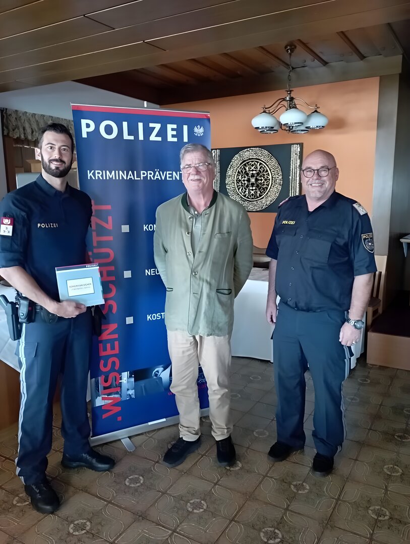 Der Dienststellenleiter der Polizeiinspektion Völkermarkt, Chefinspektor Gerald GREBENJAK und Bezirksinspektor Markus TAMEGGER hielten einen Vortrag über generelle Kriminalprävention. Neben allfälligen Themen, wie der richtige Umgang mit den Notrufnummern, welche Informationsstellen es gibt, standen die aktuellsten Themen wie: Trickbetrüger, Enkel- oder Neffentrick, falscher Polizist, ein sicheres zu Hause, und sicher im Internet im Fokus. Hier wurden die Verhaltensmaßnahmen gegen Betrüger, Ratschläge zum Schutz vor Straßenkriminalität, sowie Tipps und Tricks zur Sicherung der Wohnung oder des Hauses besprochen.