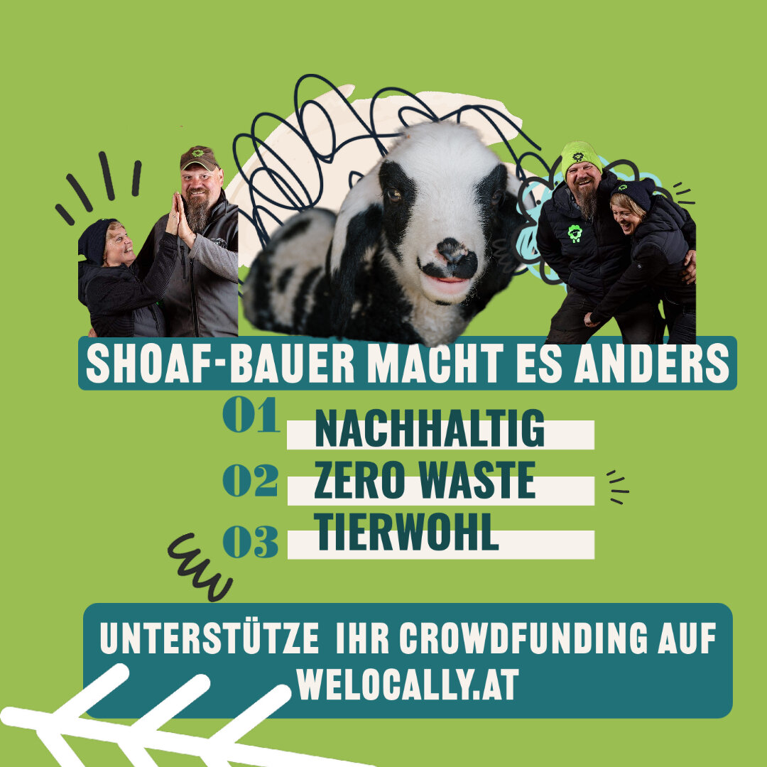 "Wir sind überzeugt davon, dass Landwirtschaft anders gedacht und gelebt werden kann: Nachhaltig, achtsam und auf das Tierwohl bedacht. Wir wollen mit unserem Betrieb Shoaf-Bauer Wege aufzeigen, wie Landwirtschaft im Einklang mit der Natur gestaltet werden kann. Dies funktioniert am besten, wenn BürgerInnen und Bauern/Bäuerinnen gemeinsam die landwirtschaftliche Zukunft vorantreiben. Wir loten deshalb viele neue Wege beim Direktvertrieb aus und überlegen uns Möglichkeiten, wie wir die Menschen stärker in den Kontakt mit unserer nachhaltig betriebenen Landwirtschaft bringen können. Wir haben dazu beispielsweise Schaf-Patenschaften ins Leben gerufen, das Shoafship. Mit dem Shoafship erhaltet ihr Produkte und könnt unseren Hof und die Tiere hautnah erleben. Gemeinsam beschleunigen wir so die Umstellung auf eine ökologische Landwirtschaft."