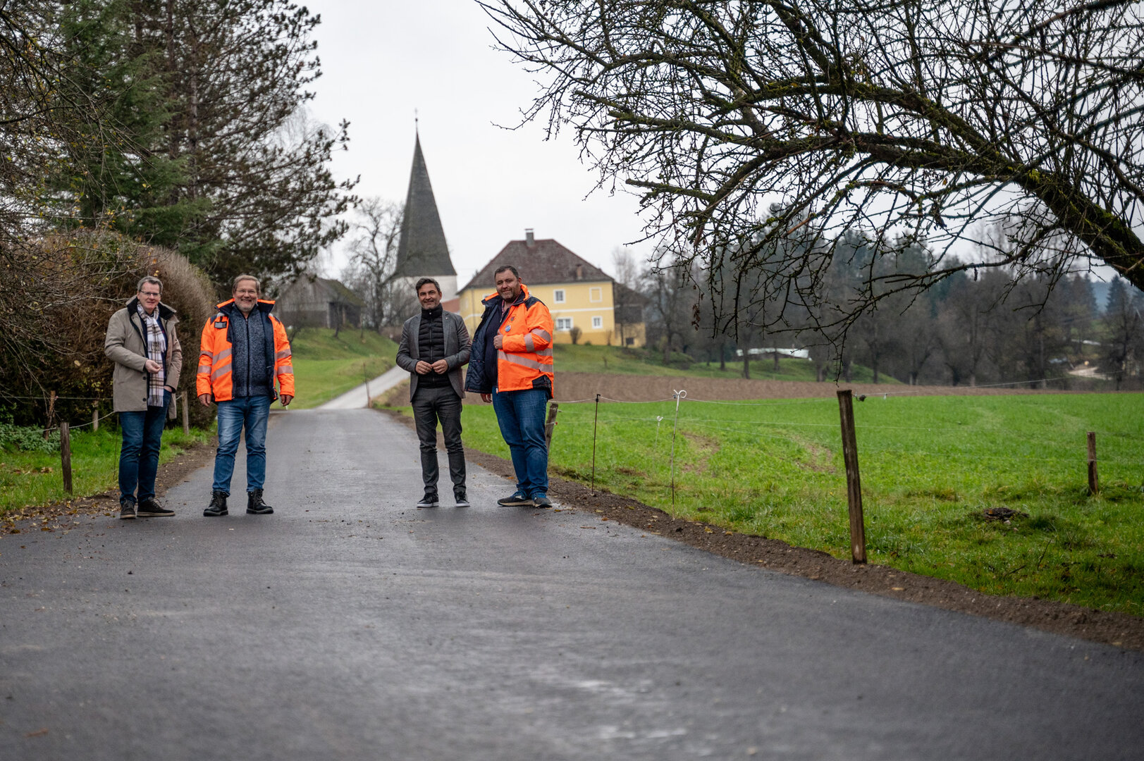 Die Neuasphaltierung dieses Straßenstückes zeigt auch die Wichtigkeit für die Gemeindepolitik, den ländlichen Raum mit Infrastrukturmitteln bestmöglich zu unterstützen, so der Bürgermeister. Den ländlichen Raum als Wohngebiet attraktiv zu halten ist ein wichtiger strategischer Ansatz, so der Finanzreferent, der darin die Möglichkeit sieht, die Einwohnerzahlen zu steigern. Mit dabei im Rahmen der finalen Besichtigung, ist auch der zuständige Bauausschussobmann Günter Hanin, der sich erfreut über diese Fortschritte zeigte. (Foto SPÖ Völkermarkt)