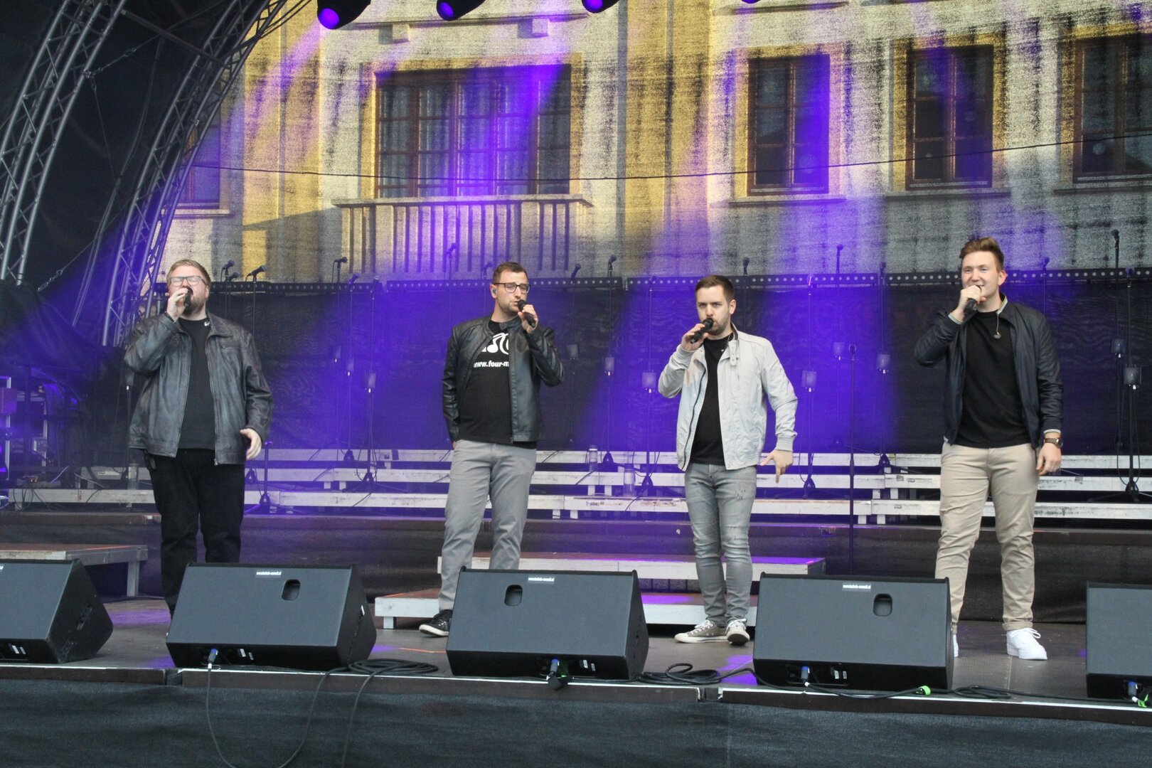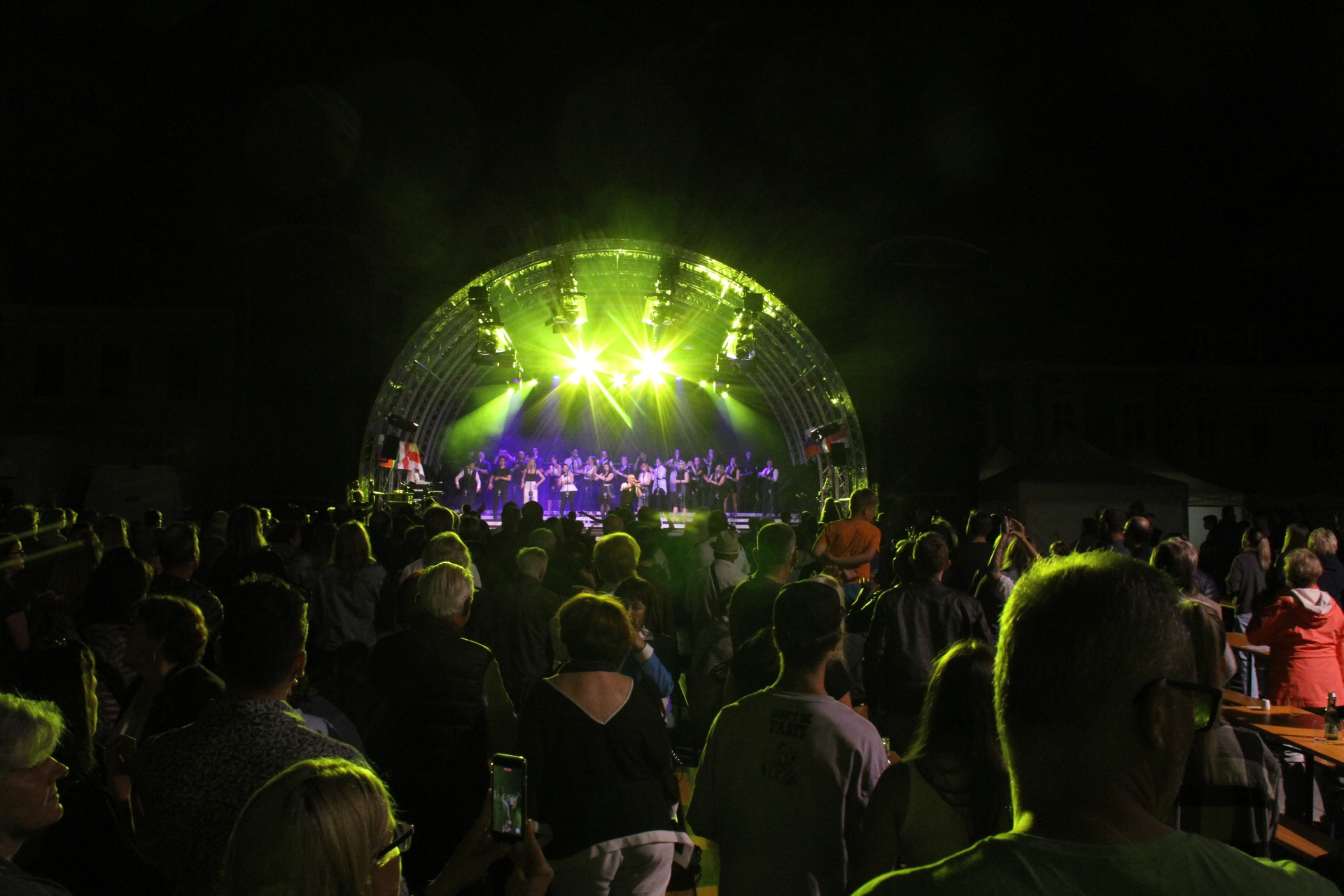 Ab 19:00 Uhr startete dann das offizielle Programm zum „Fest der Freunde“ mit einzigartigen und stimmgewaltigen A-Capella-Chören aus dem Alpe Adria Raum. Moderne A-Capella-Formationen, unterschiedliche Genres und coole Tanzeinlagen – für jeden Geschmack und jedes Alter bot die Bühne am Völkermarkter Hauptplatz einen atemraubenden Abend. Der Völkermarkter Hauptplatz platzte mit rund 2.000 BesucherInnen am Samstag aus allen Nähten. Das einzigartige Programm bot A-Capella vom Feinsten: Erstmalig ON STAGE in Völkermarkt die slowenische A-Capella-Formation „Perpetuum Jazzile“ und der italienische Chor „Elephant Claps“ aus Mailand. Weiters das bereits bekannte 4-köpfige Vokalensemlbe „4ME“ und als Abschluss trat die Kult-Band aus Bleiburg „Die Buben“ auf. Umrahmt wurde das Programm mit Showeinlagen vom „Tanzhof Baumann“.